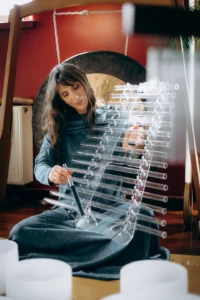 Wyobraź sobie, że nie musisz nic robić, po prostu jesteś i pozwalasz, żeby wszystko się działo samo, za Ciebie. Koncerty na które Cię zapraszam, to unikatowe doświadczenie, w którym tworzę głęboko dotykającą przestrzeń, śpiewając pieśni duszy. Korzystam z wyjątkowo wibracyjnych instrumentów, wśród których znajdują się między innymi krystalicznie czyste misy kryształowe, eteryczne dźwięki harfy kryształowej oraz majestatyczne brzmienie gongu.